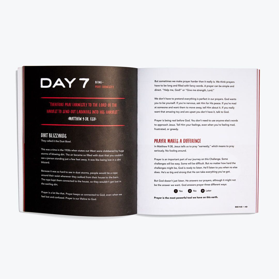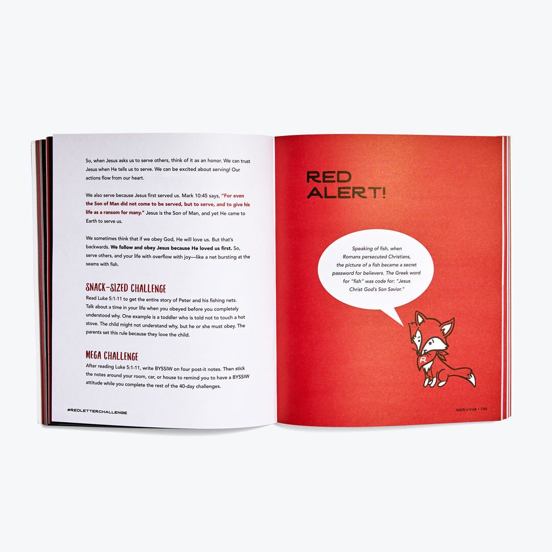 Red Letter Challenge Kids uses stories, illustrations, activities, and calls to action to help children live out their faith. They will discover, day by day, the life that Jesus has made for them.